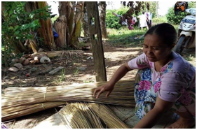 The weaving process were done in the evening time while they accompany their children to prepare the study for tomorrow. They weave many kind of product crafts like wallet, #bag, #hat and mat with various color, shape and motif.