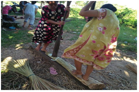 Masliah and Hamidah still working in their farms while they grab the purun plant that lives nearby the swamp around their farms. In the afternoon, they back home and start to dry the purun grass by sun drying process.